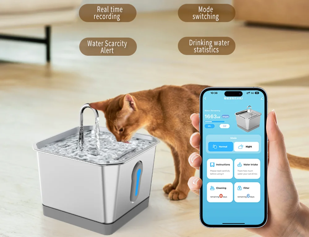 Sản Phẩm chính: Đài phun nước mèo, đài phun nước cho chó, đài phun nước cho thú cưng, máy rút nước thông minh Radar kép, Màn hình máy rút nước cho thú cưng với ứng dụng